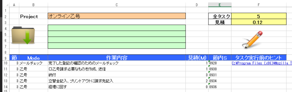 このように、「オンライン乙号する」というタスクの中身を細分化してテンプレート化することによって、漏れなくスピーディーに一連の作業を進めることができるようになります。