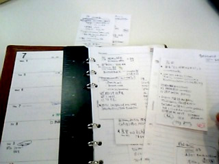 カードに書いたときには、そのままシステム手帳をのリフィルにはりますし、薄いメモ帳がに書いた重要なことはシステム手帳に転記します。