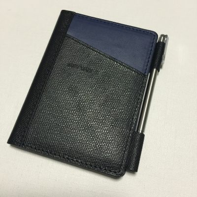 ふたつめは、胸ポケットにおさめているカード型メモか、薄い手帳です。