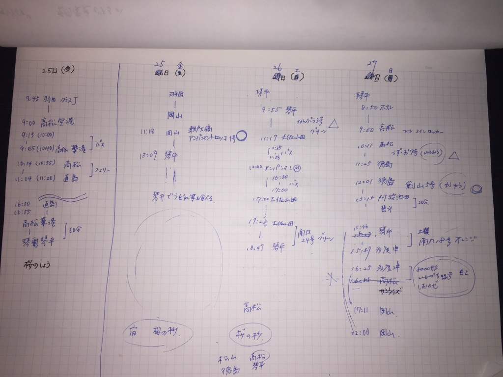 など状況が明らかになるので、再びこの条件にはまるようにA4スケッチブックに旅行の計画を書き起こし、