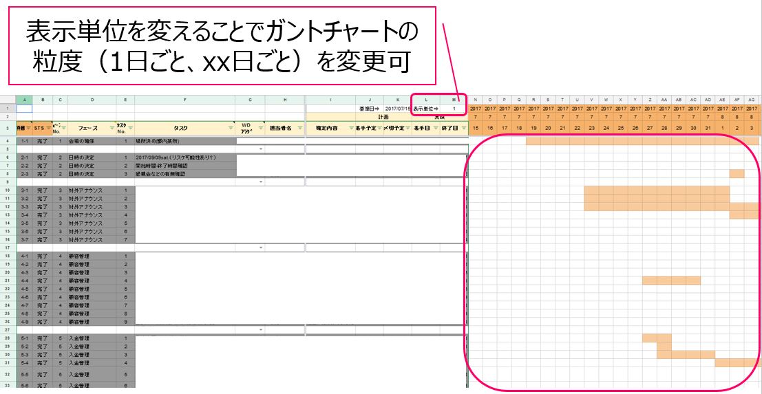 そこまでいくとほんとはガントチャートじゃなくて別成果物で構造化すべきもののようにも思えますが笑