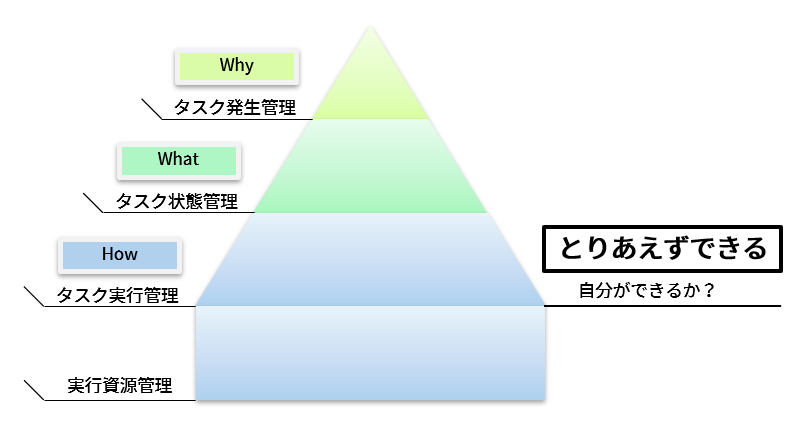 もっと具体的に言えば、タスク状態管理のWhatの計画精度の上げ方、タスク発生管理と状態管理間、そして状態管理と実行管理間のレビューの効果的な方法、自分を中心にしなくてもタスクを実行できる自分のキャパシティの広げ方等を確立できていません。
