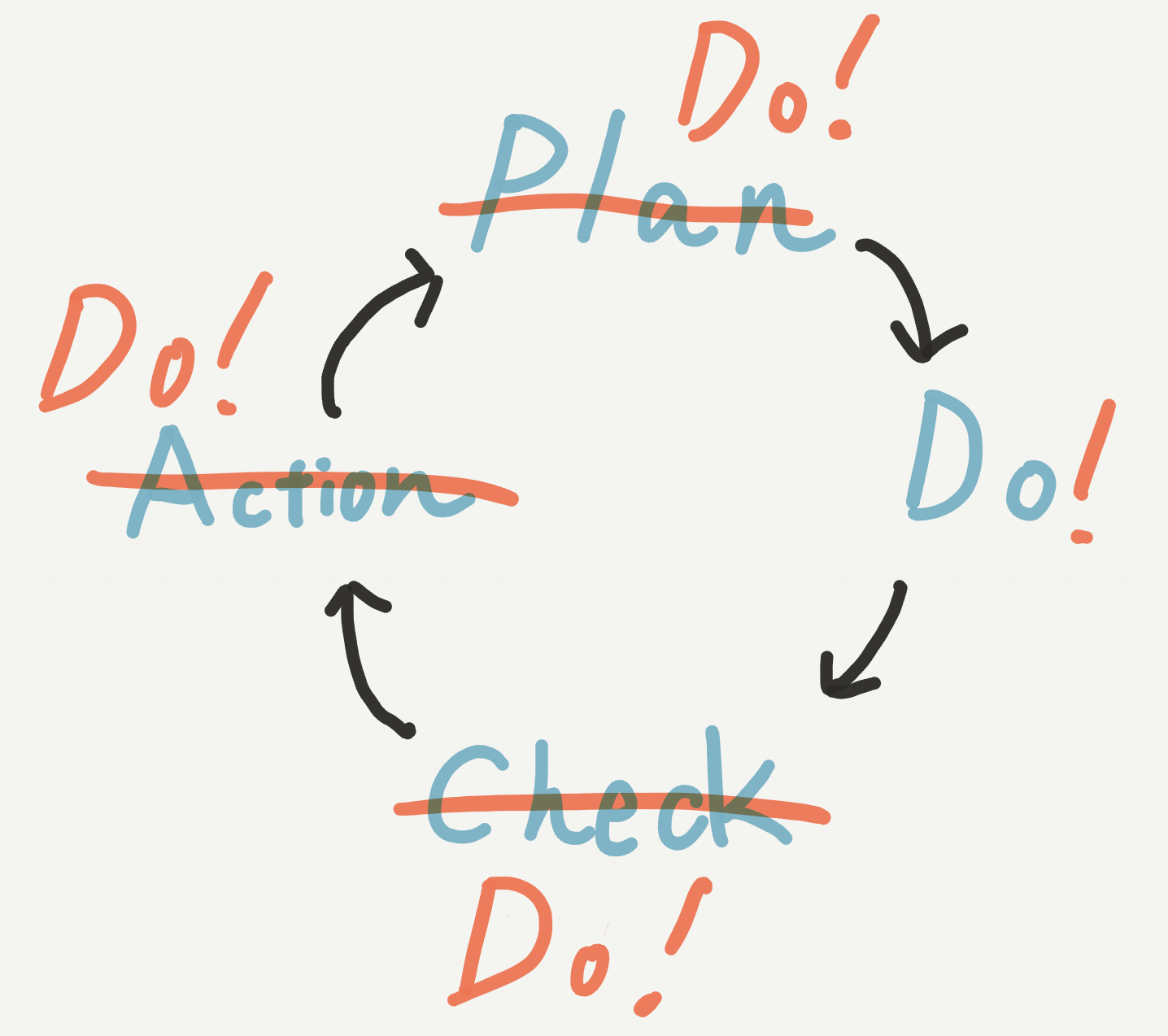 しかしPDCAの実態は、「Do」「Do」「Do」「Do」です。計画を立てる、実行する、振り返る、振り返りを踏まえて実行する、すべてタスクの実行です。タスクの実行が確実でなければ、PDCAサイクルが回るはずがないのです。