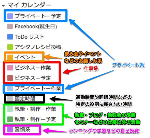 私は基本的にはGoogleカレンダー上で3つのペルソナ「プライベート」「仕事」「執筆・活動」でそれぞれ「作業」と「予定」のカレンダーを用意しています。この3つのペルソナにおけるバランスが崩れない様に常に気を付ける必要があります。