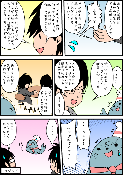 私はどうしてもGTDの「収集」をする気になれなかったので、「処理」のステップから少しずつ始めたというわけです。