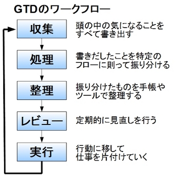 GTDでは、以下のような5ステップに則り仕事をこなすことになります。