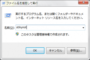 でも、Win+Rで「ファイル名を指定して実行」画面を呼び出し、「stikynot」とタイプして実行してみると、すぐに付箋アプリが立ち上がるので、面倒じゃないですね!