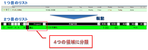 私は1つ目のリストとしてToodledoを、2つ目のリストとしてTaskChuteというものを使用しています。