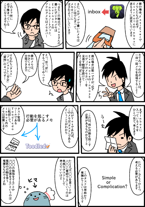 私はFastEverからのメモはEvernoteのinboxノートブックに、ロディアで書いたメモはちぎってメモカバーに挟んでいます。