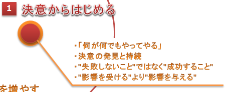 「何が何でもやってのけてやる!」という強い決意を、あらゆるものごとの出発点にすることが、セルフマネジメントの極意です。
