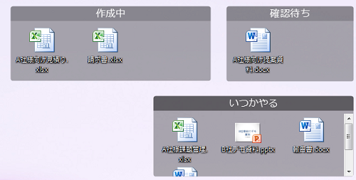 すると、手が付けられていないファイルであったり、この資料は確認してもらわないとダメだな、といった状態のファイルが一目でわかります。