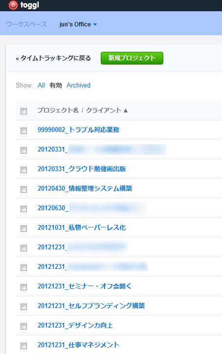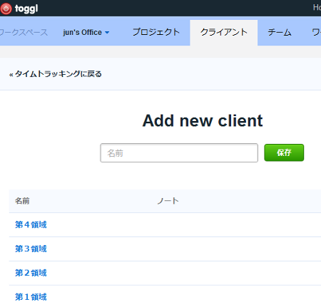 まず前提条件として、Togglに記録する行動は必ず「プロジェクト」に属する必要があります。