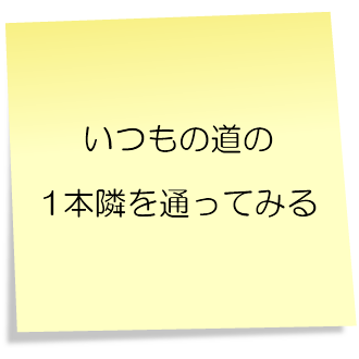 そこで提案です。いつもの道の1本隣の道を使ってみませんか?もちろん区画の大きさにも寄りますが、方向が同じであればかかる時間はそこまで増えることはないはず。