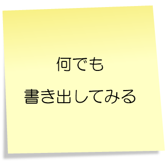 「わざわざこんなこと書き出すの?」とやめてしまわず、思いついたことを書いてみます。その時は頭の中にあっても、必要な時に再び思いつけるとは限らないからです。2度と出会えないアイディアかもしれません。