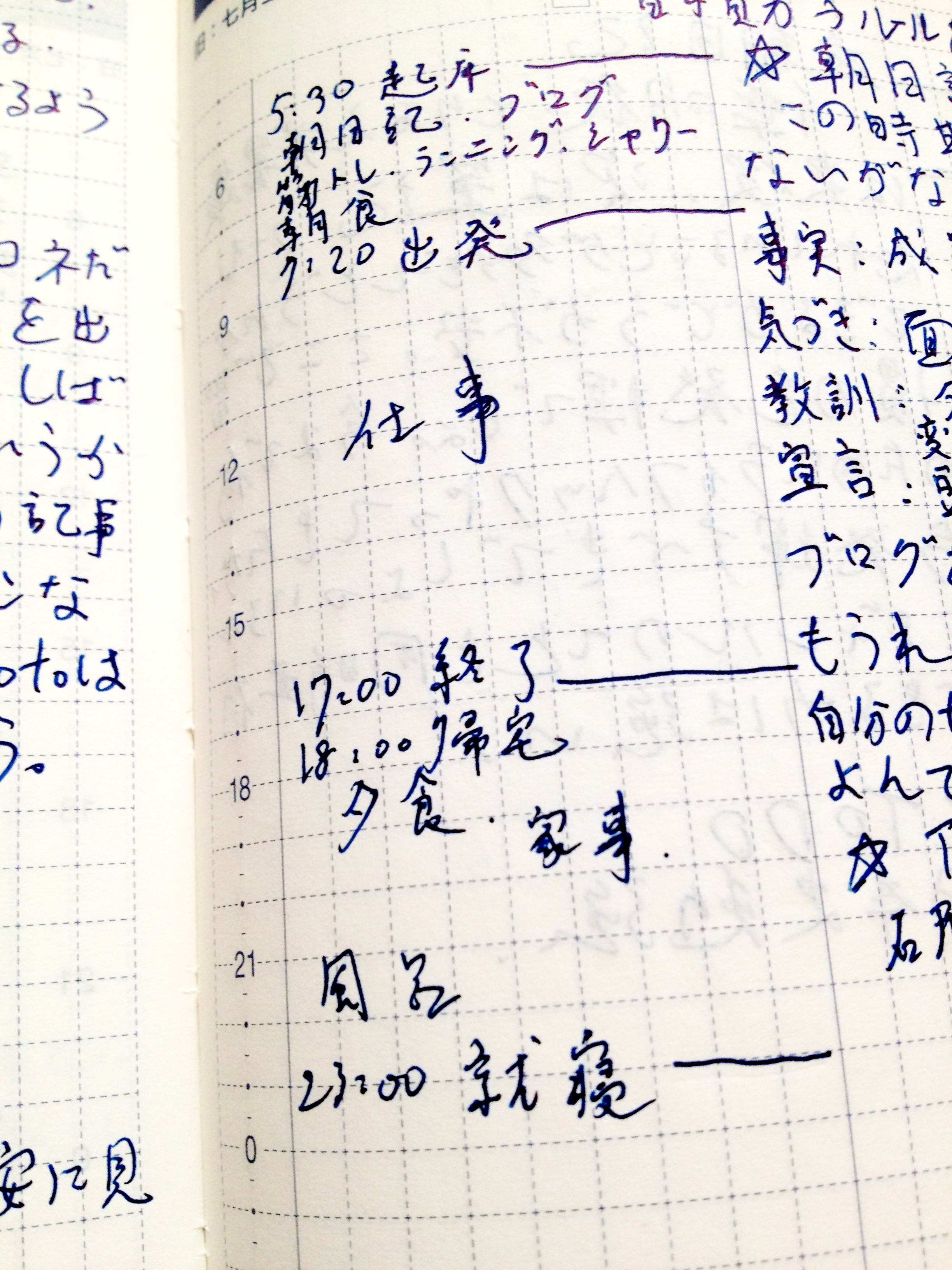最初は、24時間サイクルを意識するために毎日手帳に書いていきます。
