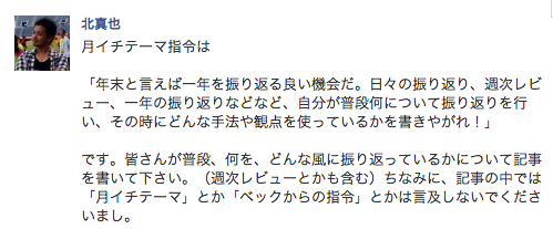 「年末と言えば一年を振り返る良い機会だ。日々の振り返り、週次レビュー、一年の振り返りなどなど、自分が普段何について振り返りを行い、その時にどんな手法や観点を使っているかを書きやがれ!」