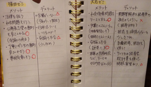 ふたつのゼミを比べてみたんだね。決断のために、あえて書き出してみたのか。