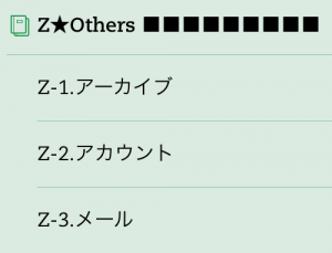 まずは「Z-1.アーカイブ」というノートブックです。その名の通りなのですが、クリップした記事や資料、あまり使わないなと思ったノートはこの場所に保存しています。