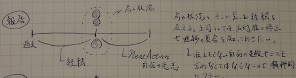 つまり、地図で言えば、今まで歩いてきた道筋と、現在立っている位置を伝えることが「報告」です。