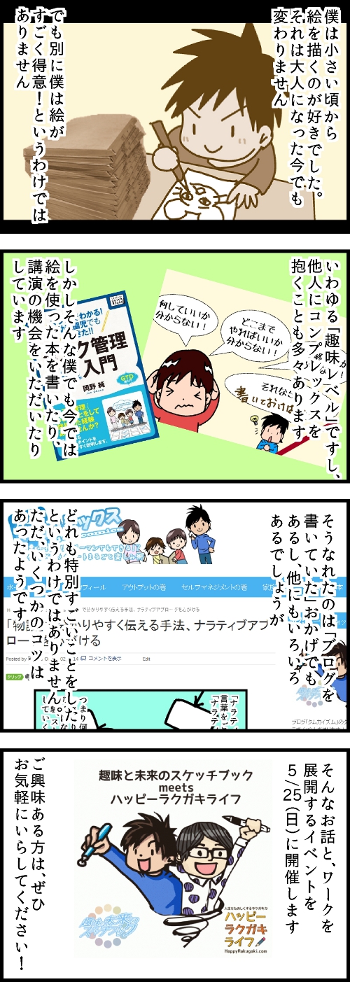 上に書きました通り、5/25(日)に「趣味と未来のスケッチブック meets ハッピーラクガキライフ」というワークショップを開催します。