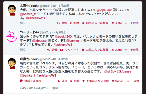 アシタノWSの実況ツイートで「モード」と「ペルソナ」についての言及があったので、補足しておきます。