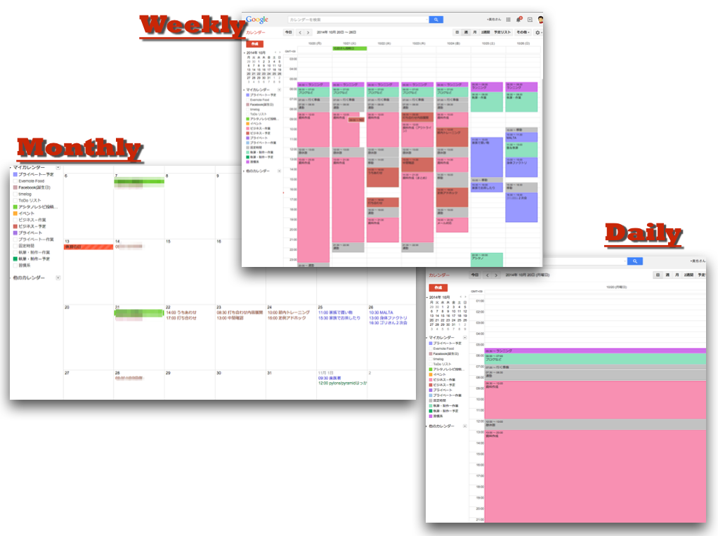 一度入力してしまえば、デバイス間での同期が簡単とか、色々な表示形式で予定が見られるという点は大きなアドバンテージです。