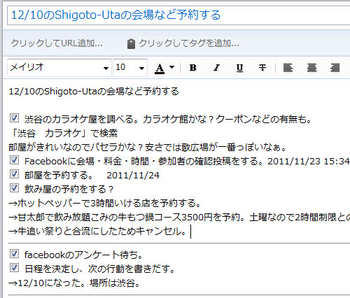 こうして記録を残しておくことで、次回にまたカラオケイベントの幹事をする際は、この作業記録をコピーしてチェックリストとして使用することができます。