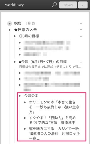 △これは私がWorkflowyに記入している、今週読む本のタイトルです。